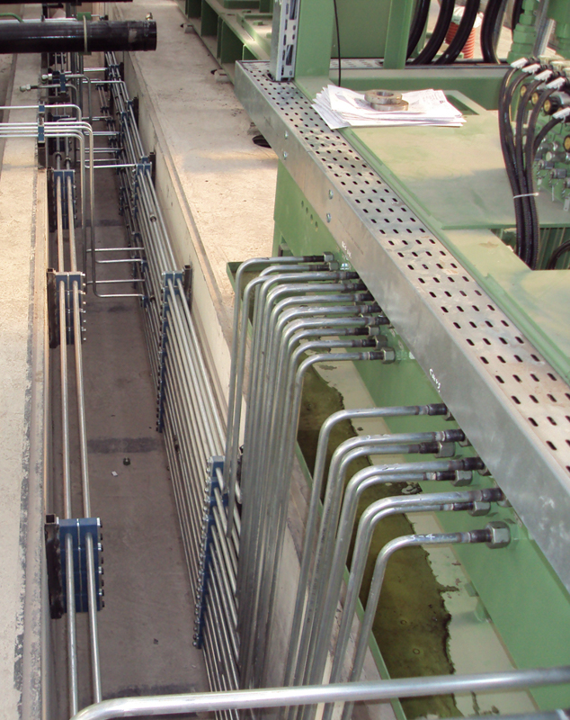 ELIMEC esegue la completa Installazione della Parte Idraulica di ogni Impianto e linea di processo e quindi la posa in opera dell’Impianto Oleodinamico, di quello di Lubrificazione, quello Pneumatico, quello di Emulsione, ecc.